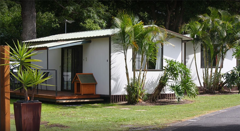 The park is located right on the Pacific Highway. The park itself has dirt and sand driveways, and there are plenty of trees on-site, so keep an eye out for these when parking and reversing.